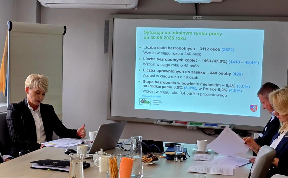 W dniu 1 października 2025 r. odbyło się posiedzenie Powiatowej Rady Rynku Pracy w Mielcu. Spotkanie miało charakter informacyjno-konsultacyjny i dotyczyło bieżącej sytuacji na lokalnym rynku pracy oraz działań podejmowanych przez Powiatowy Urząd Pracy w Mielcu.