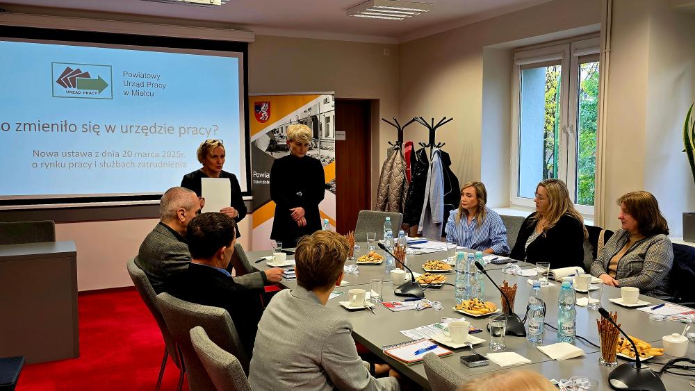W spotkaniu uczestniczyli przedstawiciele Powiatowego Urzędu Pracy w Mielcu – Adriana Miłoś Zastępca dyrektora oraz Agnieszka Fleszar Kierownik działu ewidencji i świadczeń. Celem wizyty było zapoznanie uczestników z nowelizacjami wprowadzonymi przez ustawę z dnia 20 marca 2025 r. o rynku pracy i służbach zatrudnienia, które wprowadziły istotne zmiany w funkcjonowaniu powiatowych urzędów pracy.