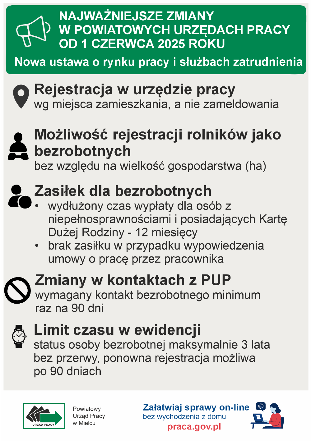 - Zmiany w kontaktach z PUP - wymagany kontakt bezrobotnego minimum raz na 90 dni