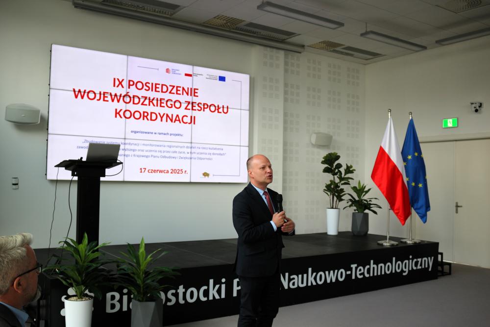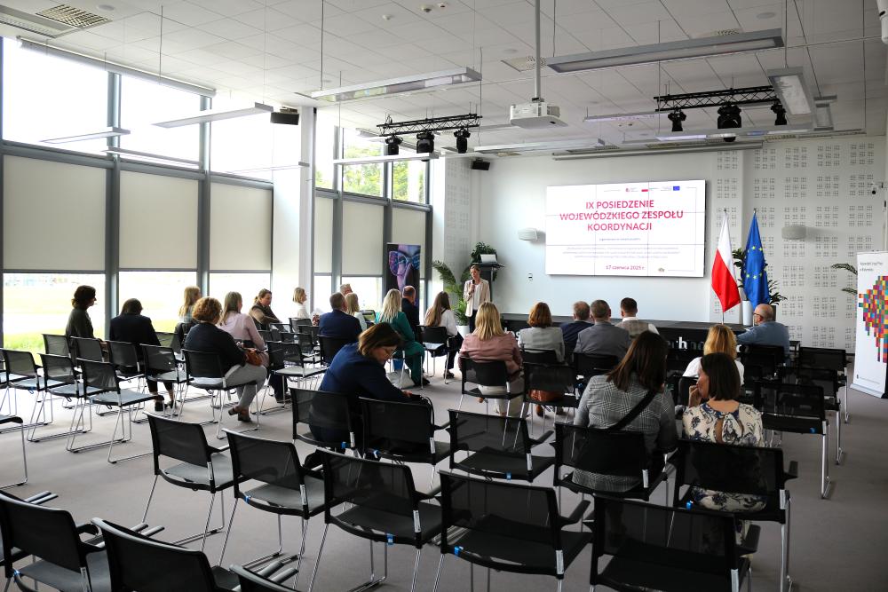 We wtorek 17 czerwca 2025 r. odbyło się dziewiąte posiedzenie Wojewódzkiego Zespołu Koordynacji, funkcjonującego w ramach projektu „Zbudowanie systemu koordynacji i monitorowania regionalnych działań na rzecz kształcenia zawodowego, szkolnictwa wyższego oraz uczenia się przez całe życie, w tym uczenia się dorosłych”. W spotkaniu udział wzięło 28 osób, w tym – oprócz członków WZK – również prelegenci i pracownicy Biura Koordynacji.